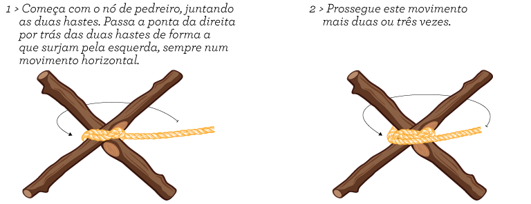 Usado para unir varas ou troncos na posicionados na diagonal. Antes de começar certifica-te que tens espia suficiente para terminar a ligação.